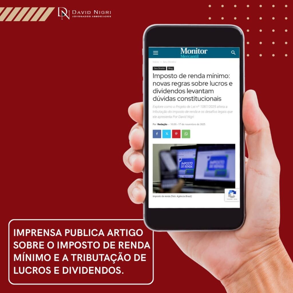 No texto, intitulado “Imposto de renda mínimo: novas regras sobre lucros e dividendos levantam dúvidas constitucionais”, o autor analisa as mudanças propostas pelo Projeto de Lei nº 1087/2025, que pretende alterar a forma de tributação do Imposto de Renda sobre lucros e dividendos de pessoas físicas e jurídicas no Brasil.
